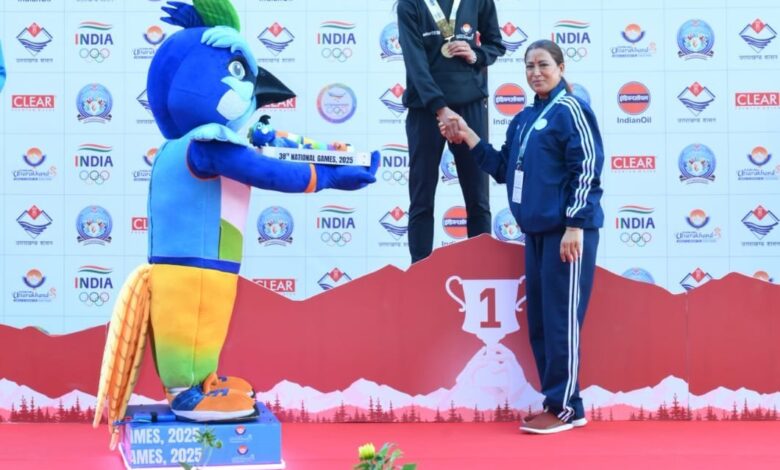 उत्तराखंड में आयोजित हो रहे 38वें नेशनल गेम्स में सोमवार दस फरवरी को एथलेटिक्स प्रतियोगिताएं हुई. तीन हजार मीटर की स्टीपलचेज दौड़ में उत्तराखंड की खिलाड़ी अंकिता ध्यानी ने गोल्ड मेडल जीता है. उत्तराखंड की खेल मंत्री रेखा आर्य ने खुद अंकिता ध्यानी को अपने हाथों से मेडल पहराया. इस मौके पर अंकिता ने कहा कि इस नेशनल गेम्स के लिए उन्होंने इंटरनेशनल मैच से ज्यादा मेहनत की थी. क्योंकि यह प्रदर्शन उनके अपने राज्य के लिए था।तीन हजार मीटर की स्टीपलचेज दौड़ को अंकिता ध्यानी ने 9:53.63 मिनट में पूरा किया। पहले नंबर पर जहां अंकिता ध्यानी रही तो वहीं दूसरे नंबर मध्य प्रदेश की मंजू यादव रही. मंजू यादव ने 10:15.70 मिनट में तीन हजार मीटर की स्टीपलचेज दौड़ को पूरा कर सिल्वर मेडल जीता. इन दोनों के अलावा उत्तर प्रदेश की रेबी पाल ने 10:37.15 मिनट ने इस रेस को पूरा कर ब्रॉन्च जीता।